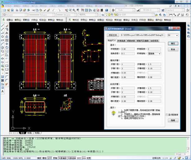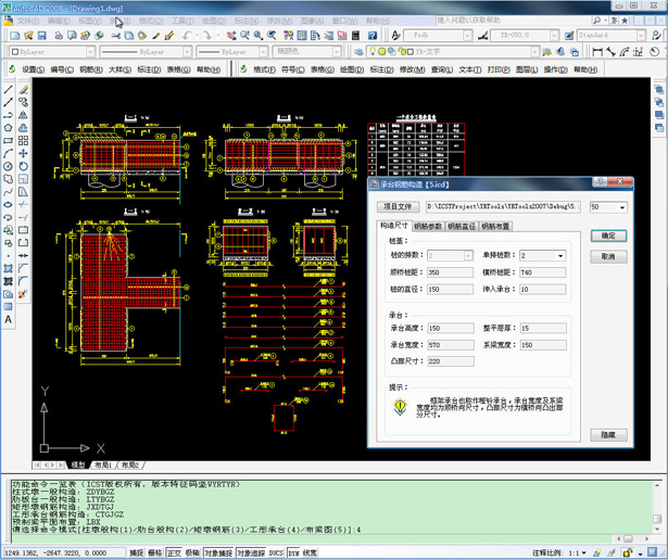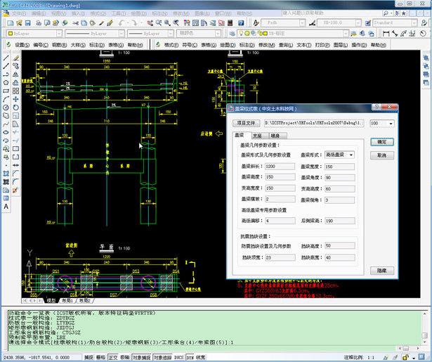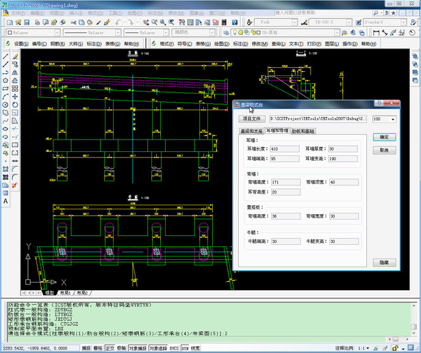 该系统是一款桥梁下部结构绘图工具软件,实现了桥墩一般构造、桥台一般构造、预制梁平面布置等绘图功能,同时可以完成工形承台和方柱墩的钢筋构造图绘制。系统支持的图形平台为AutoCAD2007~AutoCAD2009,界面友好、功能完善。
