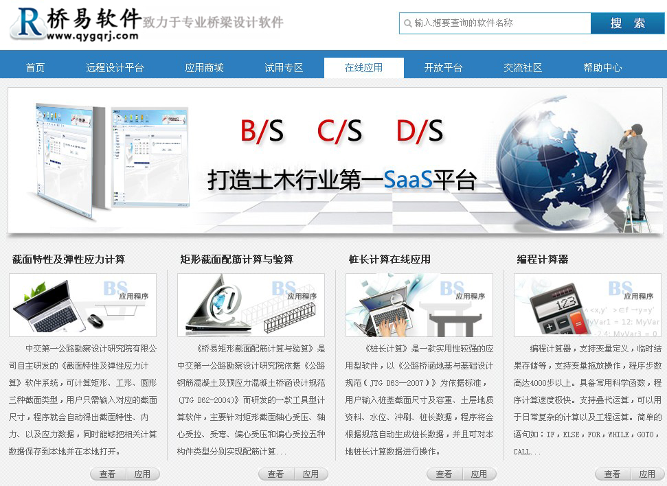 第三步:点击远程设计平台首页导航栏的“在线应用”,进入软件应用界面,选择你要使用的BS软件;